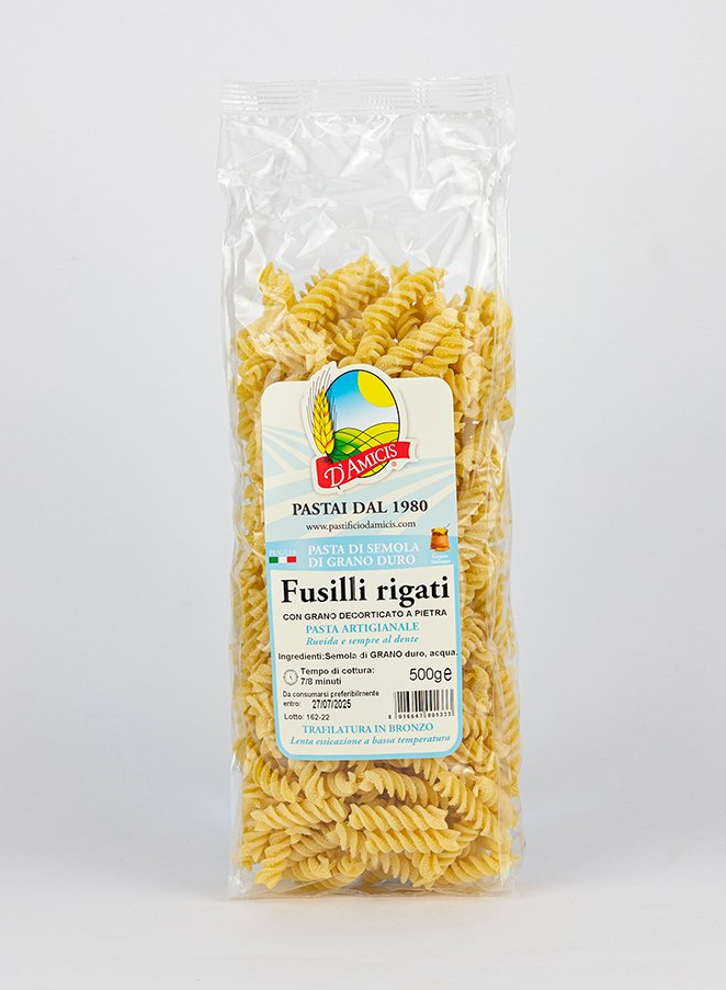 fusilli rigati - die antiken Ursprünge dieser Pastaform spiegeln sich in ihrer gerollten Form wider, die mit einer Stricknadel erzeugt wurde; eine manuelle Technik, die über die Zeit weitergegeben wurde und später zu einer gängigen Form wurde, die bei Nudelkennern sehr beliebt ist.