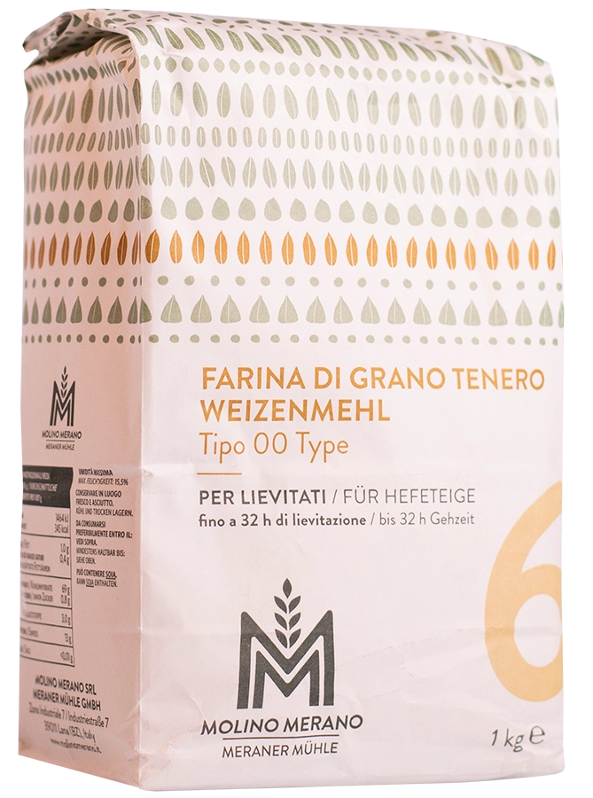 Weizenmehl Typ 00 Nr. 6 der Meraner Mühle (D: Type 405, A: W480/glatt, CH: Weißmehl/Type 400) ist ein ideales Mehl für alle Teige, die lange gehen.