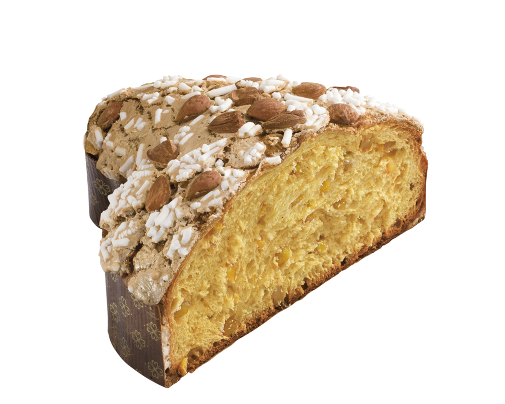Zutaten: Weizenmehl, kandierte Zitronenschalen 18,5%, Butter, frisches Eigeld von Eiern freilebender Hühner, Rohrzucker, weiße Schokoladentropfen 7,7%, Wasser, Sauerteig, italienischer Honig, frische Milch, Emulgatoren: Mono- und Diglyceride von Fettsäuren, geriebene kandierte Orangenschalen 1,2%, Salz, Vanilleschoten.