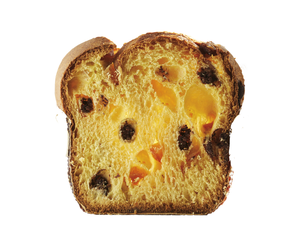 Zutaten: Weizenmehl, kandierte Orangenschalee 23,9%, frische Freilandeier, natives Olivenöl extra 6,8%, Wasser, Rohrzucker, Sauerteig, italienischer Honig, Emulgator: Mono und Diglyceride von Speisefettsäuren, Salz, Vanilleschoten;